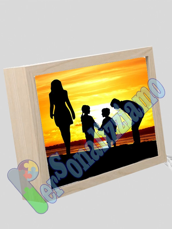 La stampa su plexiglass è una rivoluzione ed una delle più innovative. Sopratutto quando la foto e il testo sono completamente personalizzabili. Il tutto realizzato, inoltre, in elegante cornice in legno di betulla luminosa con led dal formato compatto e fatto in modo tale da poter decorare uno scaffale, un tavolo o un comodino, e qualunque base d’appoggio della casa.