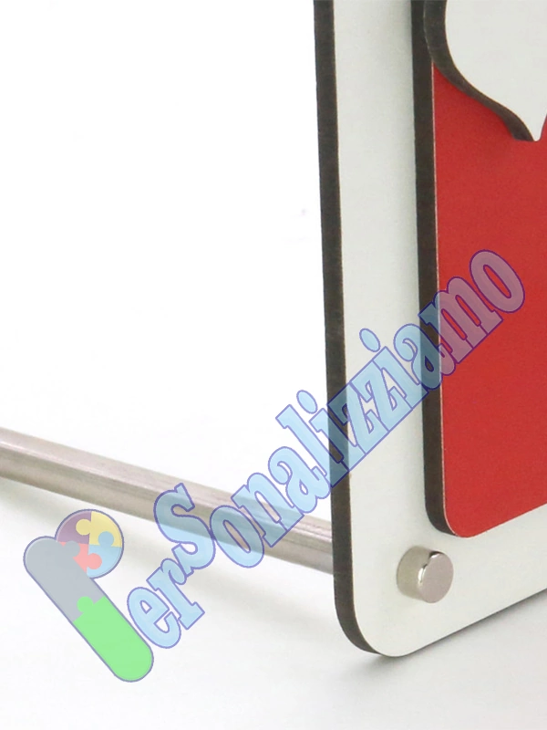 Il portafoto personalizzato è dotato di un piedino metallico d’appoggio da avvitare alla base.
