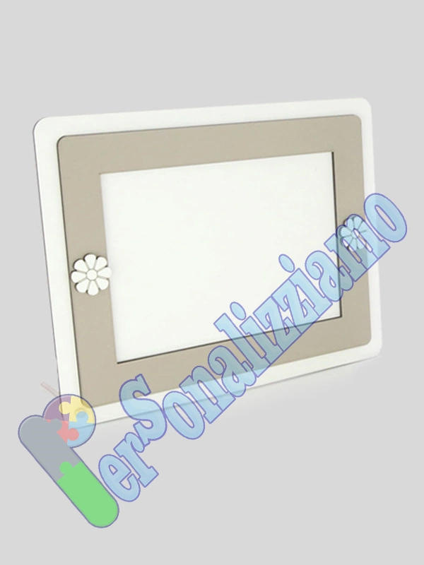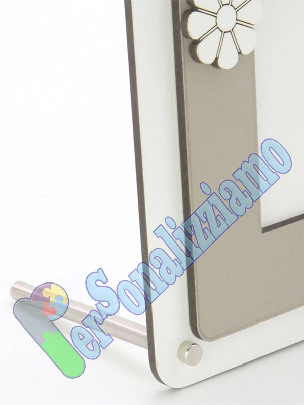 Il portafoto personalizzato è dotato di un piedino metallico d’appoggio da avvitare alla base.