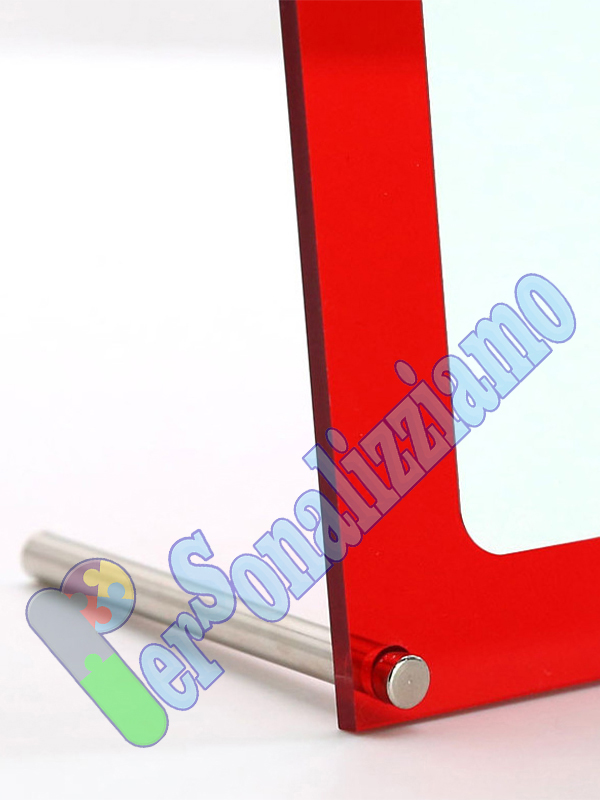 Materiale: Plexiglass rosso, stampa con Inserto in Alluminio Lucido: Per dettagli raffinati e riflessi lucenti.