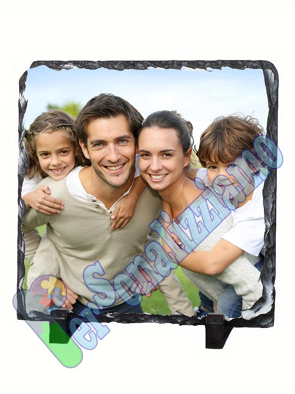 La stampa sublimatica con trasferimento termico a 190° di Personalizziamo consente di ottenere delle foto su pietra ardesia in alta definizione, con colori brillanti e indelebili.